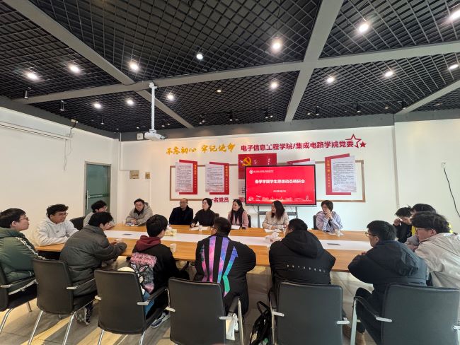 2月27日,电子信息工程学院/集成电路学院在敬业楼113召开春季学期学生思想动态调研会。学院党委书记、常务副院长杨燕,副院长孙肖林,副书记、副院长蒋丽洁,系主任、辅导员、学生代表二十余人参加此次会议。会议旨在全面了解新学期伊始同学们的思想状况、心理状态及合理诉求,以便学院能够更精准地开展教育管理和思政工作。