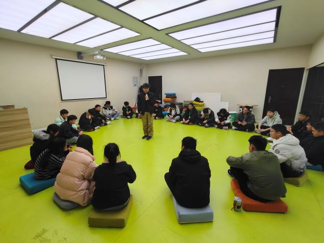活动开始前,赖国升详细介绍了本次团辅的目标及规则,强调团队契约,为活动的有序开展营造安全、信任的氛围。破冰之旅率先打破初见的拘束。“情绪猜猜猜”环节中,同学们各展才能,通过肢体语言演绎喜怒哀惧等情绪,并分享身体反应——“紧张时手心冒汗”“开心时心跳加速”。这一活动强化了情绪识别能力,深化了情绪与身体关联的认知。紧接着,精心筹备的“情绪温度计”环节,同学们绘制个性化情绪图谱,标注近期事件中的情绪强度,并分享考试压力、人际矛盾等真实经历。赖国升适时引导,分析情绪触发点,强调“情绪无对错,读懂需求是关键”,帮助大家正视情绪根源。随后,在知识普及环节,他介绍了“情绪急救箱”,聚焦实践技能,同学们通过模拟演练,掌握“危机干预+日常调节”的双重策略。活动最后,他与同学们共同回顾全程的精彩与感动,鼓励大家将活动中掌握的技能应用到日常生活中。