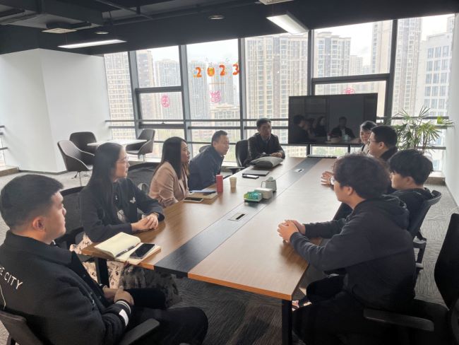 座谈交流中,智科数娱(南京)科技有限公司负责人漆红宁介绍了公司的发展历程、核心业务及人才需求。蒋丽洁介绍了学院的办学特色和人才培养模式,并希望双方能在技术研发、学生实习、师资共享等方面开展深度合作。李坡希望企业与学校能够紧密合作,进一步推动双方产学研融合发展,共同探索工业互联网领域的高素质技术技能人才培养新模式。