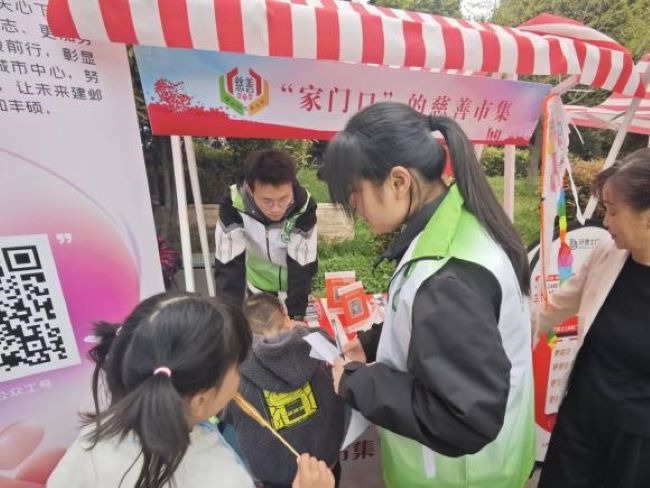 活动伊始,志愿者们有序分工,迅速熟悉岗位职责,投入到集市义卖和直播的准备工作中。他们积极协助社区搭建场地,运送活动所需物品,调试直播设备。同时,志愿者们不断丰富义卖活动的形式,包括拓印手作、风筝绘画等,增强现场观众的活跃度。志愿者们不仅协助义卖活动的顺利进行,积极参与到现场秩序的维持与节目的组织工作中,还积极走访社区困难家庭,送上慰问物品,让居民感受到春风般的温暖与关怀。