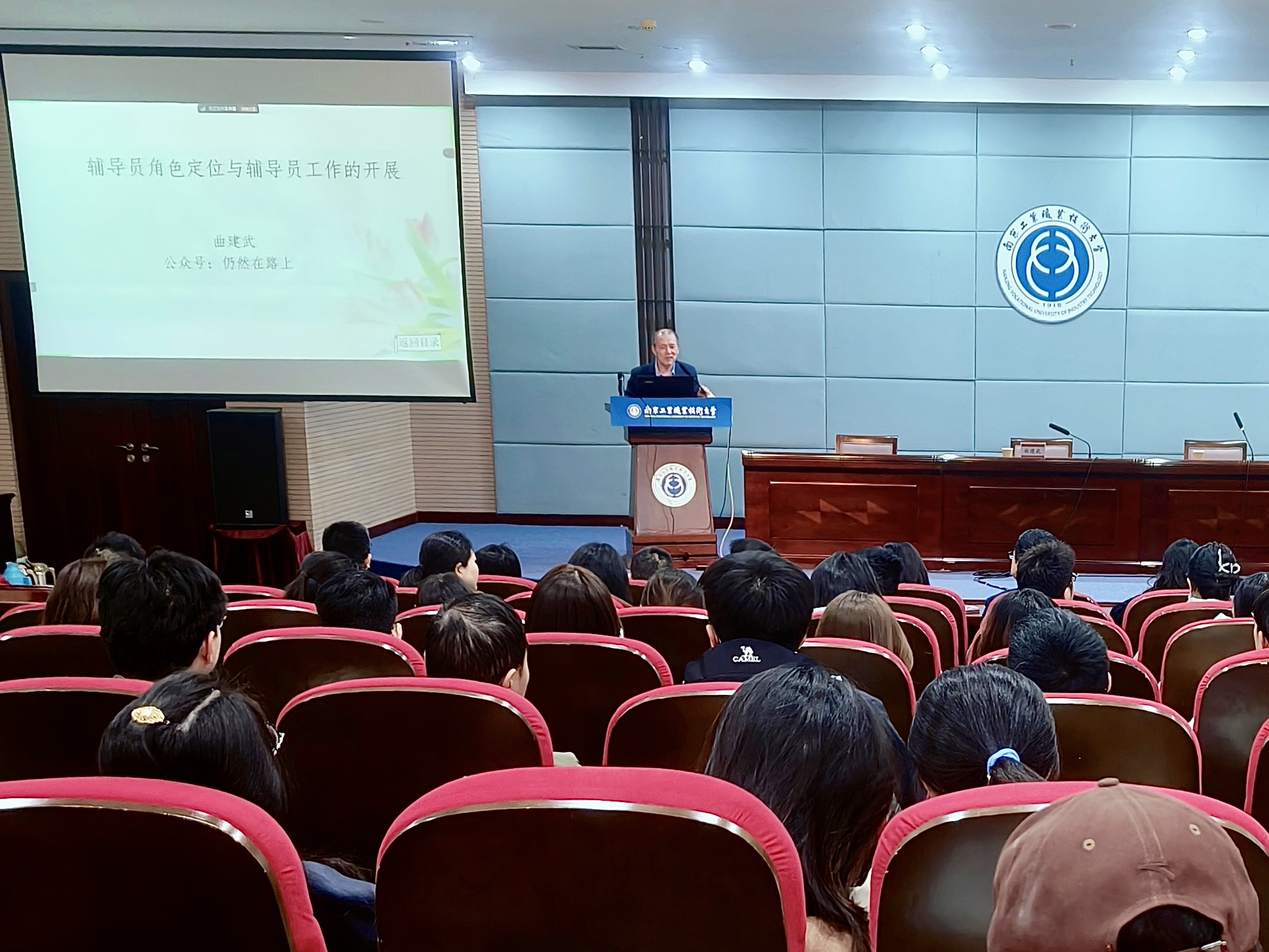 曲建武以“辅导员角色定位与工作的开展”为主题,结合自己“从辅导员到副厅长,再到辅导员”四十余载的育人经历和师者的仁心大爱,从文化定位、政治引领、人民满意和学生成长四个视角深刻阐释了辅导员的角色定位和时代使命。他勉励辅导员们牢记使命,持续在加强学习、自我教育、树立榜样、坚定信念、脚踏实地、淡泊名利、以情感人、强健身体等方面提升自我。围绕辅导员具体工作他总结了八点宝贵建议:一是加强理论教育和价值引领、二是做好少数民族学生的教育工作、三是推进网络思想教育、四是抓好学生党员骨干培养、五是帮助学生规划人生、六是加强寝室文化建设、七是加强法治教育、八是形成家校合力。