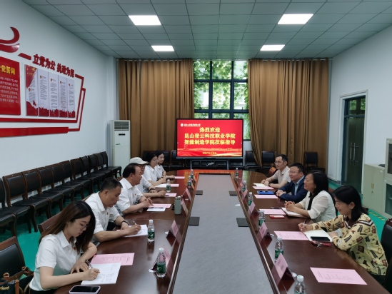 为深化职业教育专业建设,创新党建工作模式,5月15日,昆山登云科技职业学院智能制造学院书记、院长刘言强,副院长吴元徽,教工党支部书记邱小龙率调研团队一行6人莅临机械工程学院,开展党建共建交流活动。机械工程学院党委书记刘英慧、副书记、副院长赵颖、副院长余旺旺等人接待了来访。