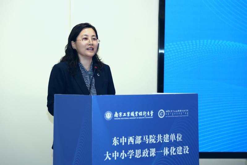 魏萍在致辞中回顾了东中西部马院共建联盟的发展历程,强调共建联盟是落实“大思政课”建设的创新探索。她指出,各共建单位要深化教学改革一体化、推进师资培养一体化、强化“大思政课”教学体系化,整合校地资源、校校资源,结合职业教育特色,推动思政小课堂与社会大课堂、网络云课堂深度融合,共同培育更多“心中有信仰、眼中有方向、手上有技能”的时代新人。