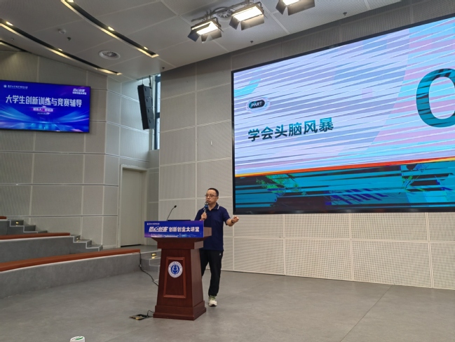 本次讲座特邀中国创客空间联盟(CMSU)理事长、南京创客空间创始人、亿合力信息科技董事长、南创创新研究院院长、中美青年创客大赛评审委员郑岩峰担任主讲嘉宾。郑岩峰结合自身丰富的创新创业经验,围绕“如何准备创新项目”“头脑风暴与创意激发”“项目计划书撰写要点”“最新赛事趋势分析”以及“AI时代下的创新思维”等主题展开深入讲解,并通过生动的案例解析,向在场师生分享了创新训练的核心逻辑和参赛技巧。此外,他还详细介绍了中美青年创客大赛的参赛流程及评审标准,鼓励学生积极投身创新实践,把握时代机遇。中美青年创客大赛以“共创未来”为主题,鼓励参赛选手应对人工智能的新趋势,开发前瞻性解决方案,推进社会数智化转型,助力全球可持续发展。
