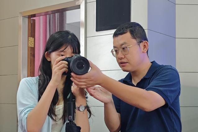讲座结束后同学们积极响应,尝试了由佳能提供的各种相机。 现场工作人员耐心指导学生如何正确使用佳能相机,并且贴心地给同学们提供照片打印服务。