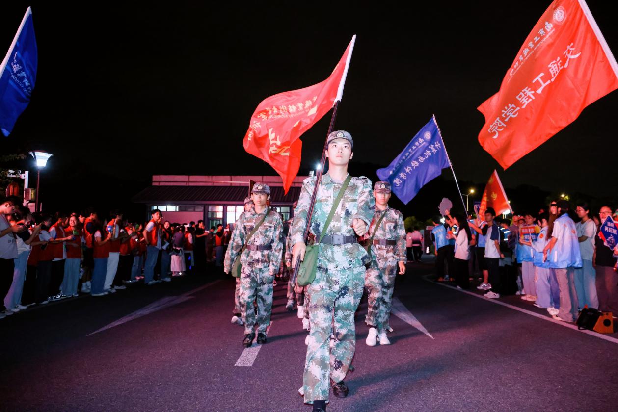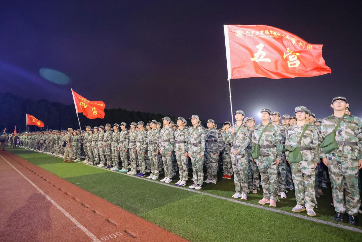 19时,2025级参训新生在校园操场整齐列队。军训团团长发表了激情澎湃的动员讲话,话语间满是对同学们的鼓励与期待,点燃了大家的斗志。随后,校党委常委、副校长高宏彦向军训团下达行军指令,宣告拉练正式拉开帷幕。