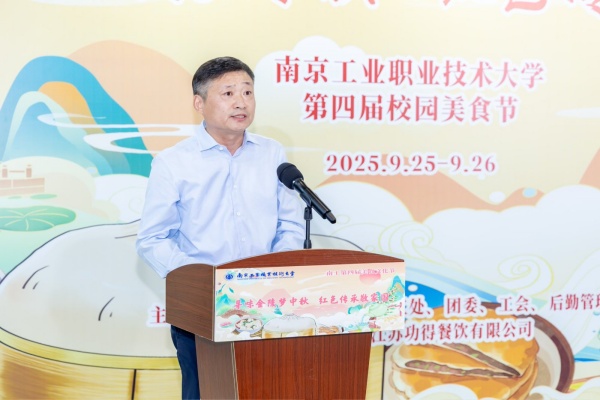 高宏彦代表学校致欢迎辞。他对出席本次美食文化节的各位领导和嘉宾表示热烈欢迎。他在致辞中向师生提出四点希望:一是要厉行节约,弘扬传统美德。全体南工学子要自觉践行“光盘行动”,拒绝“舌尖上的浪费”。二是要搭建好美食节平台,让美食节成为增进友谊、促进交流的桥梁纽带。三是要牢牢守住安全与责任的底线,对校园食品安全常抓不懈,落实校园食品安全主体责任。四是要发挥好后勤育人功能,为学生提供劳动教育载体,发挥隐性课堂作用,营造良好的校园育人环境。