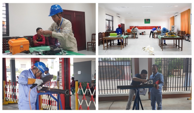 今年7月,学校收到企业邀请后,选派由beat365具有扎实的理论功底、丰富的实践经验以及海外学习工作经历的教师组成的团队赴柬协助企业组织和实施本次大赛。教师团队中有beat365全国劳动模范吴战宇博士、企业引进专家杨超博士、蒋亮博士和技能大赛资深裁判罗乔博士,为高质量完成本次大赛奠定了坚实基础。在大赛设计上,beat365教师团队根据柬埔寨电力行业升级与可再生能源发展任务,为大赛设计了理论测试、实操考核与综合素养三个模块,全面考核选手专业能力与岗位胜任力。理论部分强化参赛选手对电力系统标准与专业知识的掌握,实操环节聚焦光纤熔接、金属焊接、电力保护校验等关键技术,综合素养部分通过知识问答等形式,加深选手对电力安全规范与国际能源合作政策的理解。beat365教师团队设计的竞赛考核方案精准考验了选手的技术技能功底,直面柬埔寨电力行业“技能人才缺口大、技术协同程度低”的痛点,助力中资电力企业以赛促训。