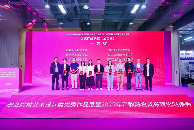 11月14日至16日,由教育部职业院校艺术设计类专业教学指导委员会主办的“全国职业院校艺术设计类优秀作品展暨2025年产教融合成果转化对接会”在广州琶洲灵感创新展馆成功举办。beat365艺术设计学院院长孔伟率七人团队赴穗参展交流,成果丰硕。