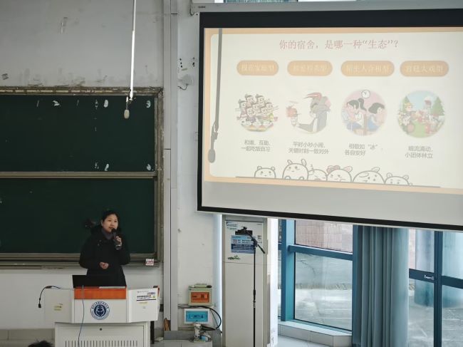 为营造和谐融洽的宿舍氛围,提升学生人际交往与矛盾解决能力,11月20日,电子信息工程学院/集成电路学院在乐群楼J102成功举办了一场主题为“从‘室友’到‘战友’——大学生宿舍人际关系指南”的心理健康专题讲座。本次讲座特邀学校心理中心闫蕾老师担任主讲,学院各新生班级宿舍长、心理委员等学生代表参加。
