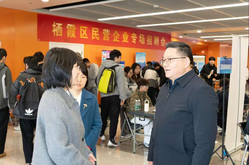 招聘会期间,校领导深入各企业展位访企拓岗。浦黄忠在与栖霞区委统战部、区工商联负责同志交流中表示,学校长期以来与栖霞区在人才培养、人才服务等方面构建了良好的合作基础,期待校地双方进一步发挥统战资源优势、深化“政校企”协同机制、为毕业生开拓更广阔的民营企业发展平台。高宏彦对栖霞区长期以来对学校就业工作的支持表示感谢,并详细了解企业当前的岗位需求,表示学校将吸纳企业的宝贵意见,持续推进人才供需精准对接,完善就业服务体系,助力毕业生高质量就业与区域人才发展同频共振。