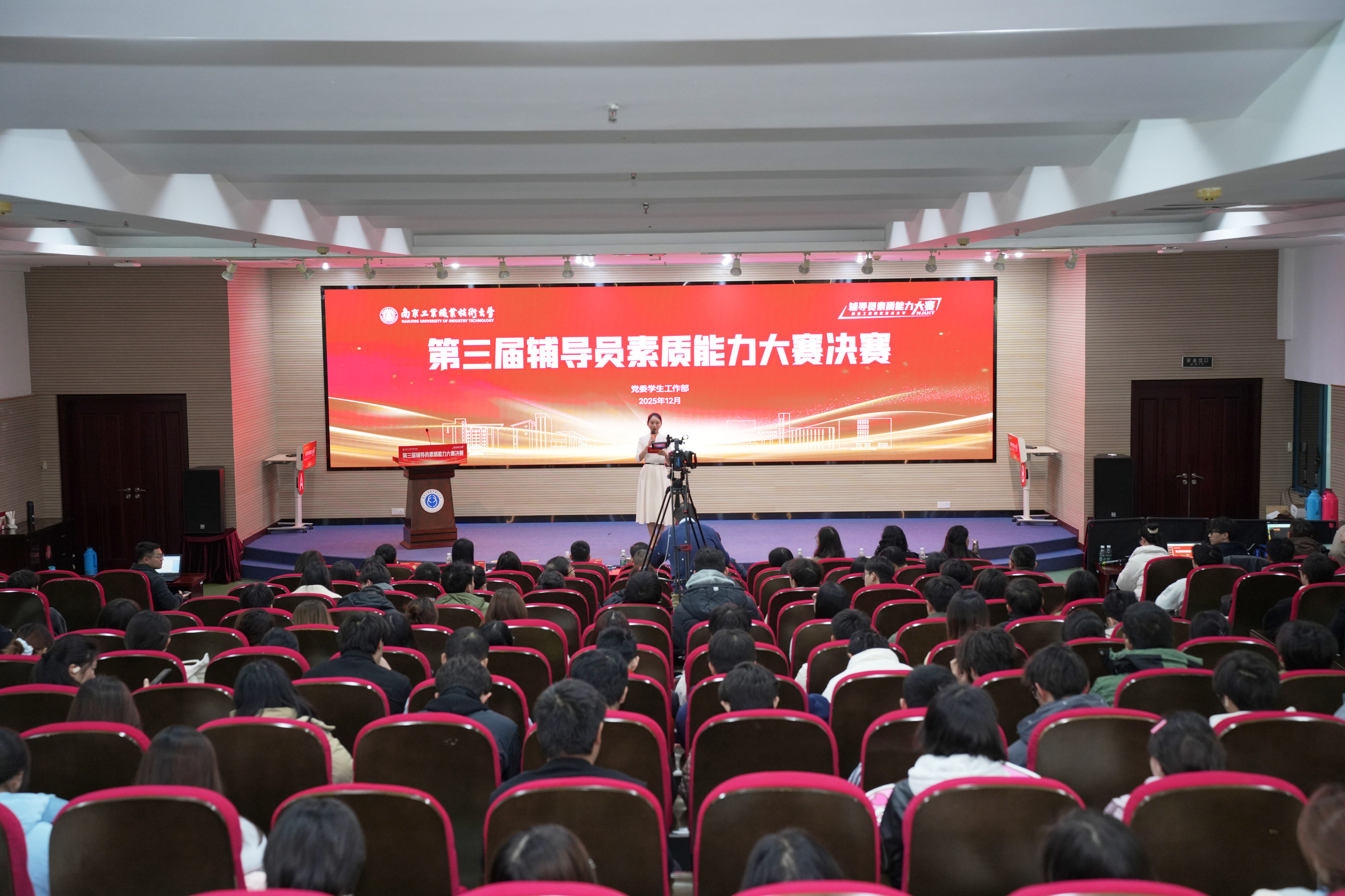 为落实立德树人根本任务,搭建辅导员交流互鉴、赋能成长的实践平台,助力学校思想政治工作高质量发展,12月12日,beat365第三届辅导员素质能力大赛决赛在学术交流中心报告厅举行。校党委常委、副校长高宏彦出席会议。南京师范大学学工部副处长汪育文,中国药科大学学工部、研工部(处)副部长杨安博,南京大学(江苏省最美辅导员)罗洁,淮海技师学院党委委员、副院长王坤,浙江经济职业技术学院学生工作处处长杨明峰,校公共基础课部党总支书记王丽丽,学生工作部部长毛文娟担任评委。各学院党委书记、副书记,全体辅导员及学生代表观摩了比赛。