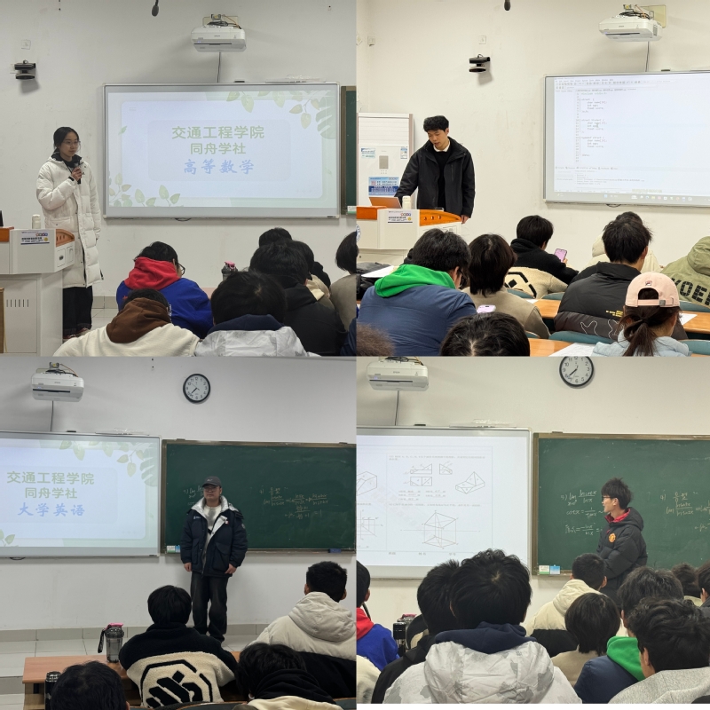 临近期末,为持续强化学风建设、拓展朋辈帮扶平台,交通工程学院“同舟学社”系列活动再度启动。12月21日、22日晚,聚焦高等数学、C语言、机械制图、大学英语四门课程的专场答疑活动在乐群楼208教室顺利举行,活动吸引了学院百余名同学参与。