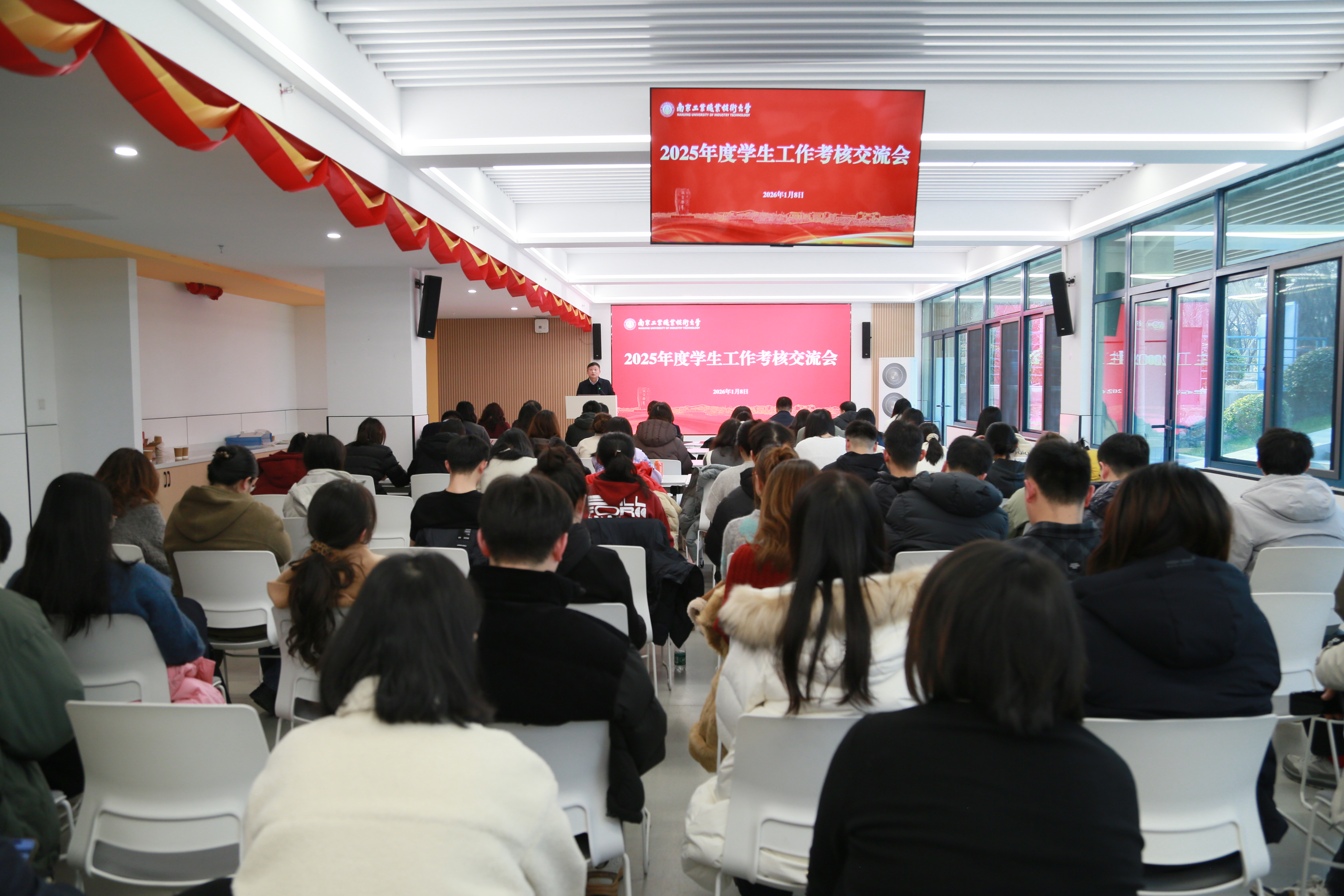 为全面总结2025年度学生工作成效,交流分享特色经验,部署2026年重点任务,1月8日下午,beat365在学生社区匠心讲堂召开2025年度学生工作交流会。校党委常委、副校长高宏彦出席会议并讲话,学生工作处、团委、招生就业处等职能部门负责人,相关学院党委书记、分管学生工作党委副书记、副院长及全体辅导员参加会议。