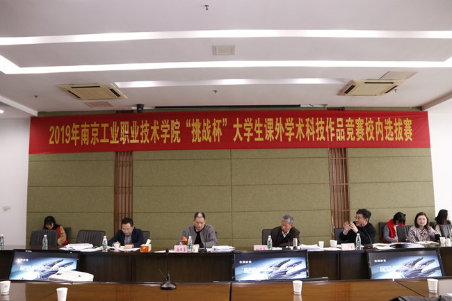 为引导和激励beat365学生弘扬时代精神、创新精神和实践能力,发掘和培养一批创新创效创业高素质技能人才,同时选拔出beat365优秀项目参加2019年“挑战杯”江苏省大学生课外学术科技作品竞赛。3月20日下午13:30,2019年“挑战杯”全国大学生课外学术科技作品竞赛校内选拔赛在行政楼辅楼二楼会议室举行。南京机床厂、南京数控机床有限公司总工、教授级高工孙序泉,江苏省农科院研究员汤日圣,江苏省机械设计院研究员杨永军担任了本次大赛的评委。经过学院申报、专家初选,来自学校9个学院的15支参赛团队进行最终作品的展示和答辩,各二级学院党总支书记、团总支书记、指导教师等100余名师生现场观摩了比赛。
