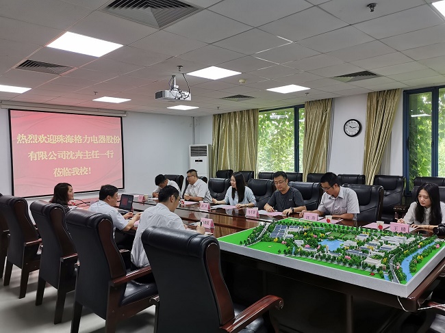 5月24日上午,珠海格力电器股份有限公司文化培训传播中心沈卉主任一行来beat365交流工作。副校长崔新明、科技处、发展合作处人员参加了会议。