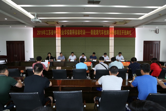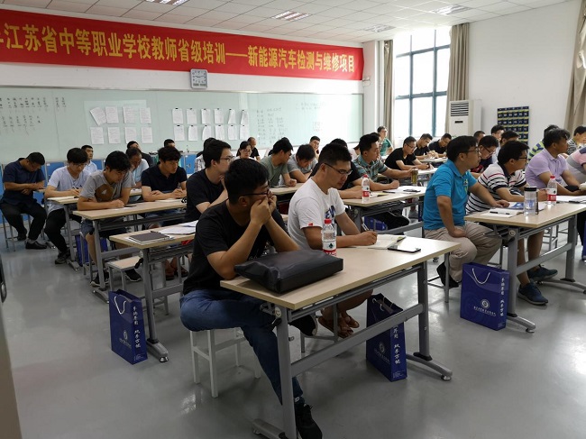 7月4日至11日,2019年江苏省中等职业院校教师省级培训——新能源汽车检测与维修项目在宁举办,本次培训由江苏省教育厅中等职业教育师培中心主办,南京工业职业技术学院承办,来自江苏省中职院校新能源汽车专业的45名相关教师参加了本次培训。7月4日上午举行开班典礼,江苏省教育厅职教处张赟科长讲话并宣布开班,beat365副校长朱建国致辞,beat365交通工程学院党总支书记周昱英主持会议。