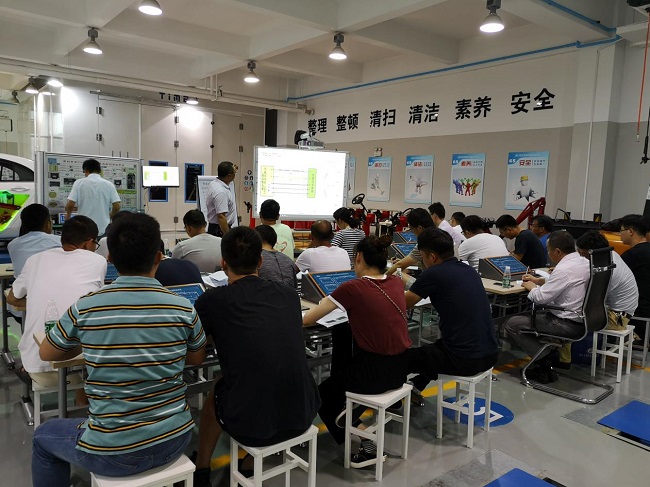 为期8天的培训中,南京工业职业技术学院党委书记吴学敏,中职新能源汽车国赛专家组长李贵炎,中职新能源汽车江苏省赛专家组成员魏世康、潘东华、吴书龙、金传琦等领导和专家进行了现场授课和专业操作指导,各位学员与授课教师进行了现场互动和热烈的探讨。课程内容包含黄炎培职业教育思想的传承与实践、职教改革与新能源汽车检修大赛、新能源汽车三电设计、新能源汽车检修、新能源汽车大赛项目实践、新能源汽车大赛设计与专家透析等模块。课程以新能源汽车检测与维修技能大赛相关内容为主线,参训学员与资深职教专家及行业专家共同探讨新能源汽车检测与维修技能大赛的训练模式,从而指导职业院校学生更加深刻地理解新能源汽车系统的设计原则和电控特性,更好地参与新能源汽车检修、维护、充电桩装调、动力总成拆装4个比赛操作项目。