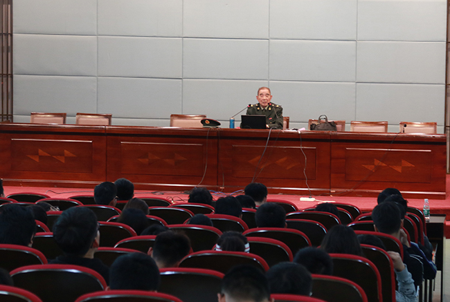 2018年4月15日是党的十九大后第一个全民国家安全教育日。为贯彻党的十九大精神和习近平总书记总体国家安全观战略思想,坚定学生理想信念,beat365集中开展全民国家安全教育日活动。4月18日下午,beat365人民武装部特邀江苏省国防教育知名专家、原东南大学人民武装部部长董本植教授来校就2018中美关系进行国家安全教育主题报告。