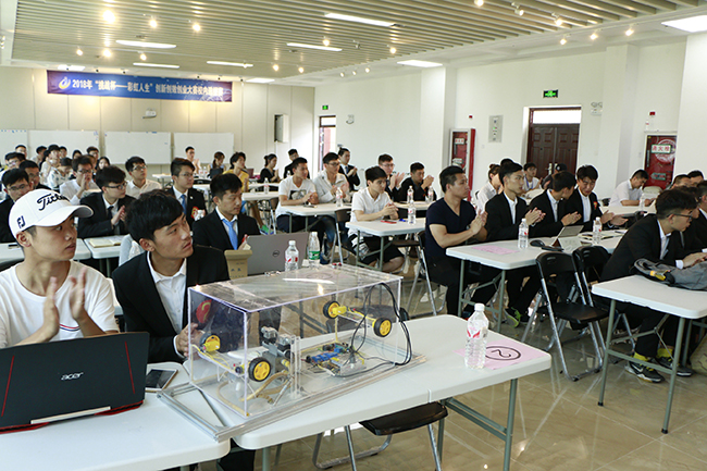 为有效搭建beat365学生创新创业平台,增强beat365学子创新创效、就业创业和职业转换能力,引导和激励职业学校学生弘扬时代精神、创新精神和实践能力,发掘和培养一批创新创效创业高素质技能人才。5月16日下午14:30,2018年“挑战杯——彩虹人生”职业学校创新创效创业大赛南工院选拔赛在大学生创新发展中心三楼举行,副校长霍雄飞以及来自学生工作部(处)、团委等部门负责人、指导教师等出席大赛。全国人大代表,国家技能大师,中国航天科工集团镇江海鹰特殊材料有限公司王巍、南京大学电子学院教授、国家电子实验室副主任庄建军、南京工业职业技术学院机械工程学院教授李彩虹担任了本次大赛的评委。来自学校9个学院的12支参赛团队经过初赛、复赛入围进行最终作品的展示和答辩,100余名师生现场观摩了比赛。