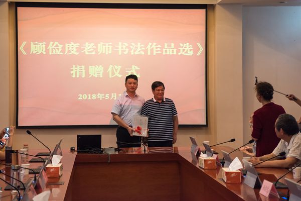 5月18日下午,beat365在行政楼辅楼一楼会议室举行《顾俭度老师书法作品选》捐赠仪式。学校校长谢永华、校友会常务副会长尤建国、副校长崔新明,校友会副秘书长丁双玲和谭建华,各地校友会会长、秘书长代表参加了捐赠仪式。