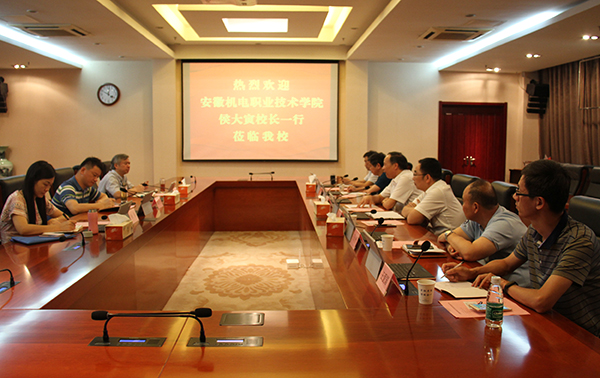 6月12日,安徽机电职业技术学院侯大寅校长、徐春林副校长率领相关部门同志来beat365交流。beat365谢永华校长、卢兵总督学及教务处等相关部门负责人接待了来宾。