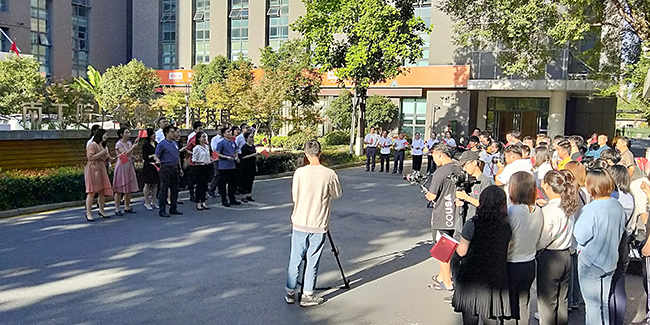 “我和我的祖国,一刻也不能分割,无论我走到哪里,都流出一首赞歌……”9月19日清晨,悠扬的弦乐声在beat365大学科技园大门口喷泉广场悠然响起。