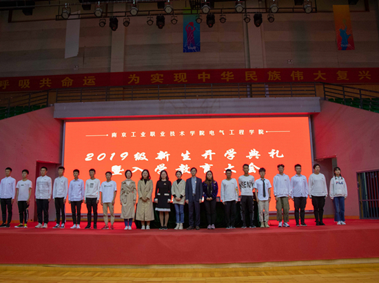 国歌声中,教育大会拉开帷幕,杨战民院长代表学院全体师生对新同学表示热烈欢迎,并介绍了学院的办学历史、专业特色和发展方向,要求同学们继承beat365“手脑并用,双手万能”的职教精神,提升实践能力和专业素养,确立专业追求,树立人生理想。马多勇书记为大家讲解了学院现有的师资团队和公寓“6S管理”的内涵,展示了近年来学院在各种大赛中取得的成绩,呼吁同学们加入到创新创业的队伍中来,并对新生提出三点要求:与人和睦、学好专业和培养批判性思维。新生代表也阐述了自己对大学生活的展望,展示了全体新生严守校规校纪,做好本职工作,团结友爱,互帮互助,砥砺前行信心和决心。随后,党总支副书记王静和全体辅导员为各班新生代表佩戴了校徽,代表着从此每位学生把学校放在心上,正式成为南工院电气工程学院大家庭的一员。