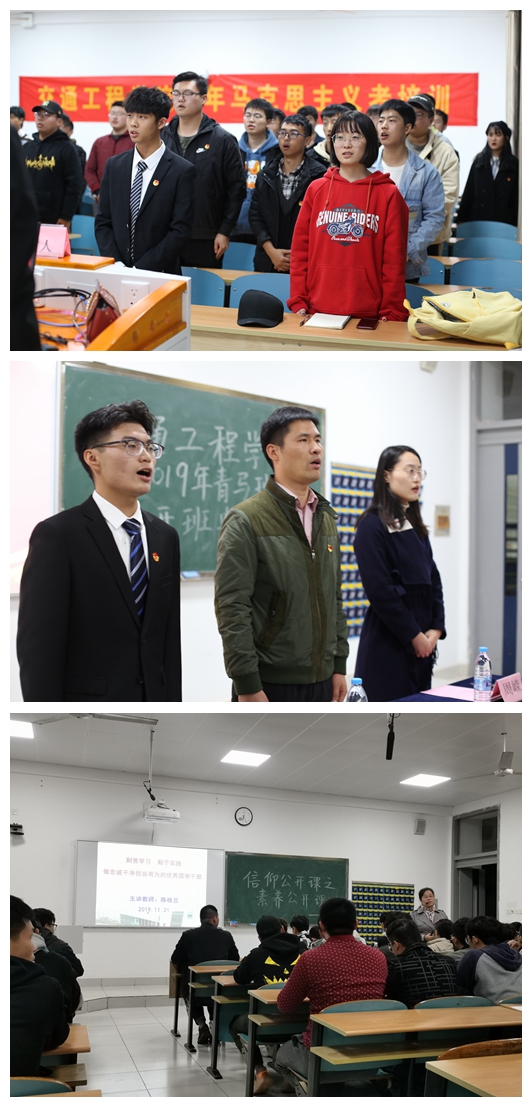 自团中央启动实施“青年马克思主义培养工程”以来,交通工程学院一直按照团中央、校团委的部署和要求,把实施“青马工程”作为一项重要的人才培养战略任务,旨在进一步加强和完善大学生骨干培养工作。11月21日晚,交通工程学院在乐群楼210教室隆重举行2019年青马班开班典礼。参加本次开班典礼的有交通工程学院党总支副书记、副院长许伟,团总支书记,团总支、学生分会各部门部长以及各班级班长、团支书。