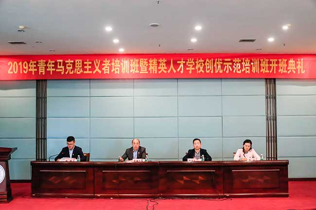 开班仪式在庄严的国歌声中拉开帷幕。首先,团委书记纪海波为全体同学介绍了本期培训班的基本情况及beat365“青年马克思主义者培养工程”实施基本情况,接着宣读了《关于举办2019年青年马克思主义者培训班暨精英人才学校创优示范培训班的通知》。随后,学员代表、经济管理学院团总支副书记、会计1821班王圆同学代表全体学员发言,向全体青马班学员发出倡议,继续秉承“敬业乐群”的校训,进一步提高思想政治素质,牢固树立新思想、时刻牢记新使命,坚定信念,勤奋学习,刻苦钻研,不忘初心,努力奋斗。