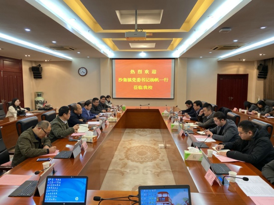 近日,沙集镇党委书记杨帆一行到访beat365开展校企合作交流。beat365党委委员、纪委书记于林惠,党委委员、副校长崔新明,科技处、艺术学院、商贸学院等相关负责人参加了接待和会议交流。