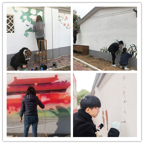 该项目是由学校党委组织部牵头,由艺术设计学院党总支与句容市边城镇赵村村委会党建结对共建的一项硕果。接手项目以后,艺术设计学院张霞老师带着同学们进行了多次的实地勘测,反复讨论设计方案,过程中克服了时间紧、路程远、天气寒冷、施工面不规则、施工面积较大等多种困难,于11月20日至12月9日,组织20余名同学,利用课余与周末加班加点施工,共绘制了近四十幅作品。内容从社会主义核心价值观到廉洁文化,从中国梦到绿水青山,从传统美德到尊老爱幼,每一幅画都凝聚着同学们的辛勤和努力,每一幅画都体现了中国人民对美好生活的向往和追求。