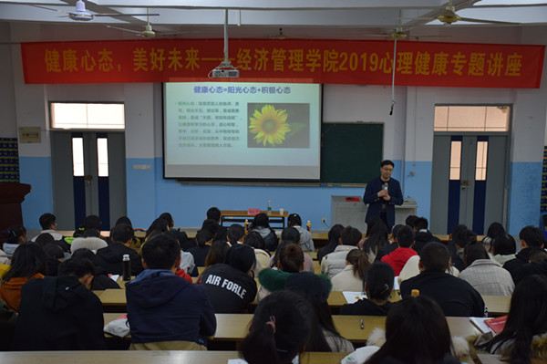 本次讲座以“健康心态,美好未来”为主题,曹加平首先从健康心态等于阳光心态加积极心态开始,结合同学们在生活中的具体事件详细阐述了阳光心态、积极心态的具体含义,接着分析了“你像那只狐狸”小测试中十种狐狸的特点,并且总结三点启发:1.合作共赢,2.放弃,3.替代、补偿,不要在挫折面前否定自己。曹加平还从学生和雇主两方面的角度分析了就业情况,并给同学们提出了中肯的建议。然后曹加平阐述了在宿舍生活中要遵守作息时间、人际交往等公共约定,并指出成熟的人要懂得自己的言行和环境相适应,并分享了压力与工作绩效关系图。最后的互动环节,同学们就自己关注的情感方面的问题,向曹老师进行了提问,曹加平给大家提出了合理的建议,并引导同学们树立正确的恋爱观。
