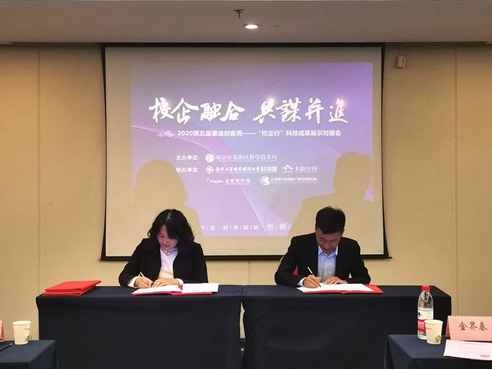 金界春致开幕词,介绍秦淮区科创载体建设情况,充分肯定科创载体在知识产权及科技成果转移转化等方面所作出的积极努力,并表示区科技局将和科创载体一道,继续为企业成长聚力赋能。四所高校科技成果转移转化负责人分别对各自学校科技成果进行了展示和介绍。园区科技服务合作机构——南京九致信息技术有限公司市场部负责人徐阔就知识产权转让政策解读和实务操作进行指导。在各位来宾的共同见证下,江苏弈赫能源科技有限公司等三家科技型企业代表与beat365亚洲版官网科技处副处长宣慧签订了科技成果转化协议。最后,与会企业、高校、科技服务机构就科技成果转移转化合作事宜展开了深入交流,多家企业根据自身需求,明确了进一步的合作意向。