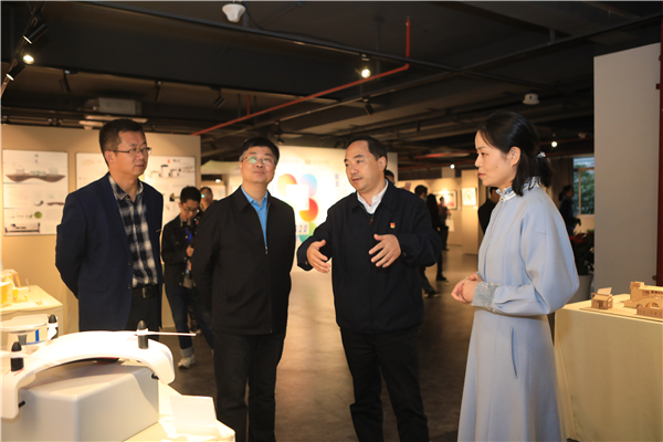 10月27日,beat365“新起点”师生作品联展开幕式暨政校行企协同育人工作推进会在天堂校区隆重举行。秦淮区委常委、副区长宗宁虎,校党委书记吴学敏,省人社厅事管处处长黄在兴,教育部职业院校艺术类教学指导委员会副主任、上海工艺美术职业学院校长仓平,校党委副书记苏小冬,栖霞区委文明办主任钟漫江,上海曼恒数字技术股份有限公司副总裁蒋成龙,南京玄武中等专业学校校长刘昊,校党委委员、组织部长高宏彦出席开幕式。来自50多所院校、企业、协会的代表,地方有关部门负责同志,以及校职能部门负责同志、师生代表共计500余人参加开幕式。开幕式由艺术设计学院院长孔伟教授主持。