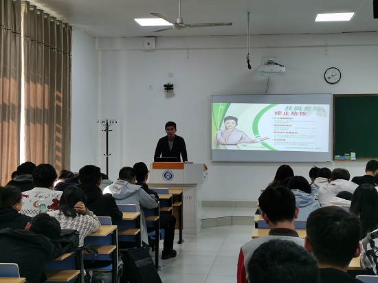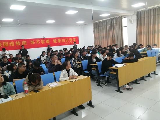 11月4日下午,航空工程学院在乐群楼201举办“校园结核病 咳不容缓”健康知识讲座。本次讲座特别邀请了江苏省疾控中心慢传所副主任医师陈诚博士和beat365公共卫生科科长王海茹为大家讲解结核病相关知识以及预防方法。航空工程学院学生代表共100人参加了讲座。
