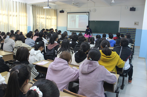 首先吴波队长在乐业楼102教室为同学们主讲了消防安全知识专题讲座,在讲座中,他首先播放了火灾现场的视频,详细讲解了火灾的基础知识,预防火灾的基本原理;他提醒同学们一定要提高消防安全意识,严格遵守各项防火安全制度、严格执行校园规章制度和防火安全制度、在宿舍内坚决不卧床吸烟,不乱扔烟头等;接着他具体介绍了建筑消防设施的操作使用及消防器材的使用以及预防火灾12字——去火源、降荷载、强设施、畅通道。最后重点说明如何正确拨打119火警电话以及遇到火灾的应对的措施和逃生方法。