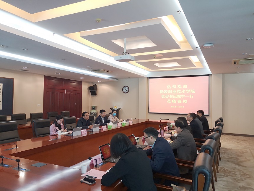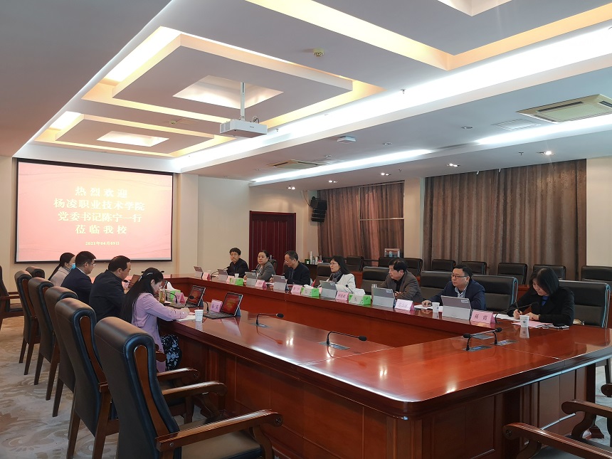 4月9日上午,杨凌职业技术学院党委书记陈宁一行来beat365考察调研。党委书记吴学敏、党委副书记王伟,以及人事处、教务处等部门负责同志在行政楼辅楼一楼会议室接待了来宾。
