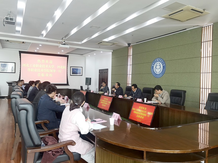 4月9日上午,河北工业职业技术大学党委书记王振杰、校长薛晓萍、河北软件职业技术学院副院长乔哲一行来beat365考察调研。党委书记吴学敏、党委副书记马成荣,以及发规处、本科职业教育试点办公室、科技处、发展合作处等部门负责同志在行政楼辅楼二楼会议室接待了来宾。