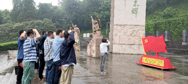 全体党员在讲解员的带领下,依次参观了“奋勇抗敌”“壮志凌云”“缅怀先烈”等展馆。一件件实物、一张张图片,让全体党员对航空抗战历史有了进一步的了解。冒着细雨,党员同志们拾级而上,来到纪念碑前,敬献花篮,寄托哀思,并在碑前重温入党誓词,深切缅怀在抗日战争中为了抵御外敌入侵英勇献身的航空英烈。