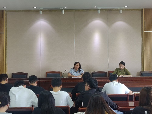 6月4日,计算机与软件学院党总支书记刘英慧在敬业楼415室为学院2021届党员毕业生上最后一堂党课。