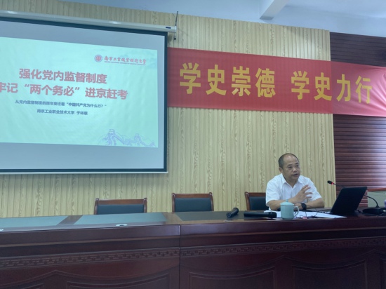 于林惠从党内监督制度的百年变迁、强化党内监督是我党的政治优势、新时代的“进京赶考”三个方面讲述了党内监督的制度发展、党内监督的政治优势以及中国共产党不懈奋斗的精神状态。此外,于林惠通过论述中国共产党成立的条件、党的五次理论创新、理论创新的伟大意义及启示,并结合个人的工作经历、科研经历,鼓励大家克服困难,在教学科研中超越自我,要求大家在努力提升自己的同时,为职业本科教育贡献出自己的能量。