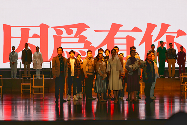 作为文化和旅游部全国抗疫题材重大舞台作品和江苏省艺术基金重点项目,话剧《因为有你》选择用真实的、接地气的方式讲述疫情暴发后江苏援鄂医疗队、社区工作者的抗疫故事,通过发生在武汉一个社区、一家医院、一些家庭的暖心故事,串联起武汉、南京同饮一江水的情谊。精美的舞台,巨型的玻璃长廊,通过巧妙的组合完成了整场演出的场景转换,折射出疫情下的人间百态。剧中多个故事均源于真实案例,其中角色段一鸣的父亲段波,更是以东南大学附属中大医院副院长邱海波教授为原型而创作,表现出疫情期间一线医护人员守护生命、不惧生死的伟大奉献精神和基层工作者的坚韧力量,传递出激荡人心的温暖与感动。全剧根据真实抗疫故事创作,没有脸谱化的角色,没有说教的腔调,没有空洞的宣讲,真实表达了父女之情、父子之情、夫妻之情、战友之情、邻里之情……整场演出现场掌声不断,反应热烈,通过特殊时期平凡“人”的“事”、平凡“人”的“情”的艺术再现,传递出激荡人心的温暖与力量。