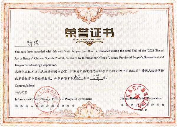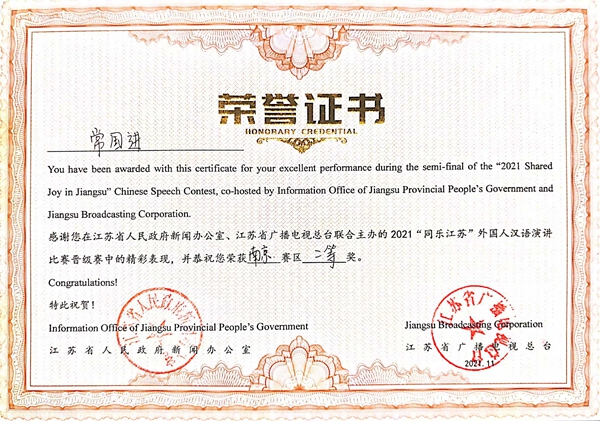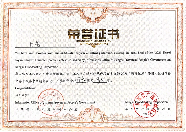 beat365留学生在2021“同乐江苏” 外国人汉语演讲比赛活动中喜获佳绩