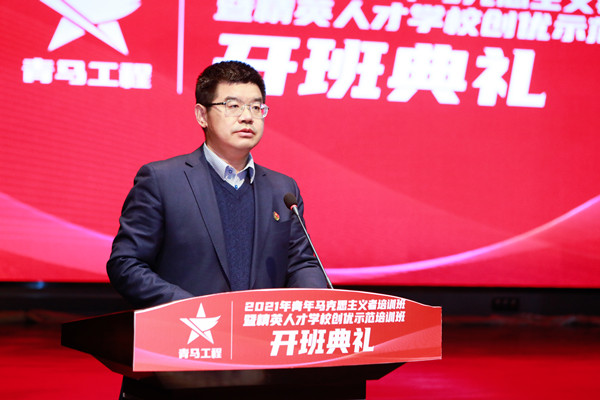 开班典礼上,王伟代表学校党委对“青年马克思主义者培养工程”新一期培训班的成功举办表示热烈的祝贺,并对青马班学员提出希望与要求:一是坚定理想信念,做马克思主义的坚定信仰者;二是增强理论自信,做马克思主义的模范践行者;三是发挥表率作用,做马克思主义的积极传播者。最后,王伟希望大家学党史、强信念、跟党走,树立远大理想引领爱国之志;担当时代责任诠释爱国之情;练就过硬本领支撑爱国之行;锤炼品德修为涵养爱国之心。与时代共奋进、与学校同发展,做社会主义核心价值观的践行者、黄炎培职业教育思想的弘扬者、科学文化知识的传播者和优良校风学风的维护者,成为德智体美劳全面发展的社会主义合格建设者和可靠接班人,用智慧和力量,奋力谱写精彩的青春篇章。