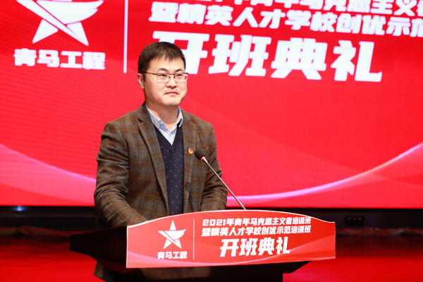 纪海波为全体同学介绍了本期培训班的基本情况并介绍了培训班的相关课程安排。郭武朋同学作为青马班学员代表发言。