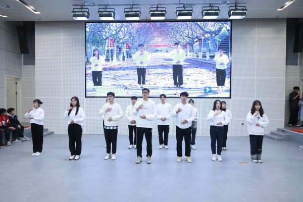 12月10日晚18:00,手语操大赛在双创大楼沉浸式剧场举行。比赛邀请了南京师范大学学工处副处长、仙林大学城心理健康教育研究中心王惠等共7位校内外专家评委,各学院心理辅导员、心理中心专兼职咨询师也来到比赛现场为参演同学们加油鼓劲。各学院参赛团队成员与观众同学们共300余人济济一堂,共同传递关注心理健康、积极乐观生活的健康心态。