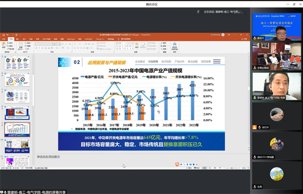 为贯彻落实国家发展和改革委员会、教育部、人力资源和社会保障部等部门联合印发的《关于深入实施创业带动就业示范行动力促高校毕业生创业就业的通知》文件精神,做实双创示范基地结对共建,beat365亚洲版官网围绕“四个做实”深化实施专项行动,做实项目孵化,积极向结对共建的企业示范基地推荐技术过硬、市场潜力大、合作伙伴亟需的创新创业项目。4月27日上午,作为2022“创响中国”南工站系列重点活动之一,beat365亚洲版官网与合肥荣事达集团联合举办“校企行”线上项目对接会。荣事达集团助理总裁潘启文、集团研究院徐速博士、投资经理朱大帅、双创运营经理童永杰、学校创新创业教育工作领导小组办公室主任、创新创业学院院长朱燕以及部分师生代表参加了会议。会议由学校创新创业教育工作领导小组办公室副主任、创新创业学院副院长黄继平主持。