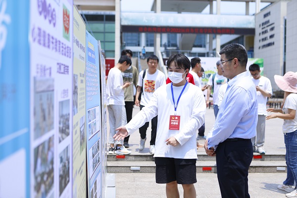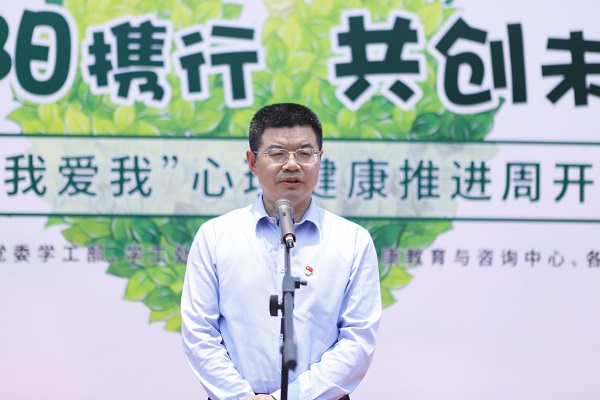 王伟致开幕辞,对同学们提出四点要求:一是善待自己,照顾自己,学会调节情绪;二是包容他人,学会换位思考,和谐人际关系;三是战胜挫折,拥有战胜挫折的信念和接受挑战的能力;四是理解约束,理解学校对同学们暂时的约束,是为了同学们的人身安全及学校更好的发展。随后,王伟为朋辈心理工作者先进代表赠书,强调班级心理委员、院心理部成员、校心协成员作为朋辈心理工作者,是心理工作的重要力量,为建设学校四级心理预警体系发挥了重要作用。王伟还参观了各学院心理健康工作总结展示区,并与同学们亲切交流。