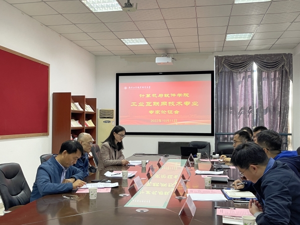 10月11日上午,计算机与软件学院在敬业楼417会议室召开工业互联网技术专业申报论证会,本次论证会邀请了南京航空航天大学陈松灿教授、南京林业大学蒋玲教授、南京邮电大学董振江教授对拟增设的工业互联网技术专业进行论证。计算机与软件学院院长胡光永、副院长郭雷、副院长马浩、工业互联网技术相关教师出席会议。